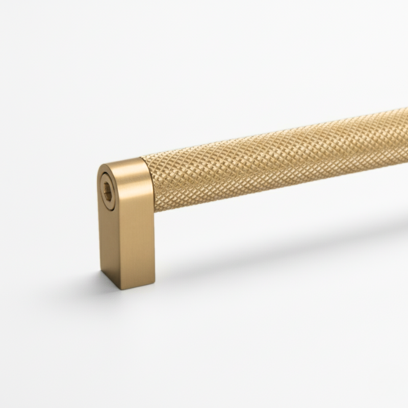 Este modelo de puxador apresenta um design moderno e sofisticado, com uma textura serrilhada que oferece uma pegada firme e segura. Ideal para cozinhas, banheiros e móveis em geral, ele combina funcionalidade e estilo, agregando um toque industrial e contemporâneo ao ambiente. Robusto e durável, este puxador é perfeito para quem busca praticidade sem abrir mão da elegância.