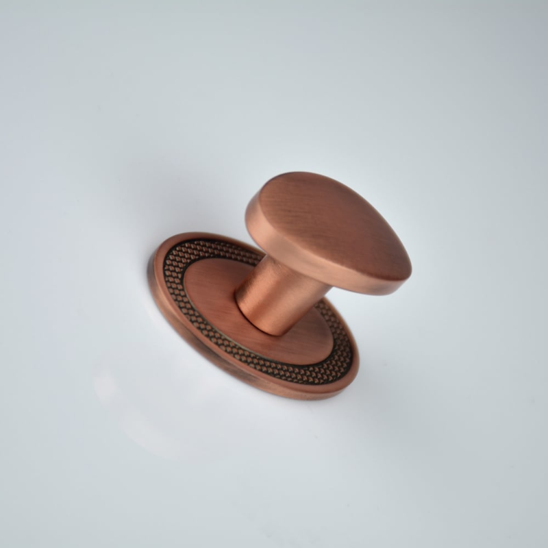 O puxador Beetle com base Granada em acabamento cobre vecchio é ideal para quem busca um visual clássico e elegante nos móveis. Seu tom envelhecido traz charme e personalidade, perfeito para composições mais sofisticadas ou retrô.