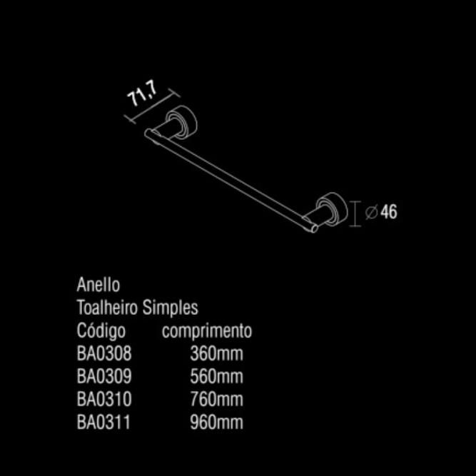 Toalheiro Anello Simples 360mm Cr/Diamiond/Pol Ba0308.697